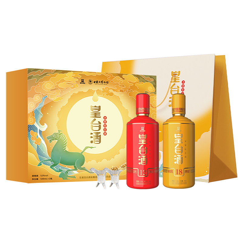 皇臺(tái)甘肅博物館馬踏飛燕聯(lián)名款禮盒裝52度窖底原漿系列濃香型白酒